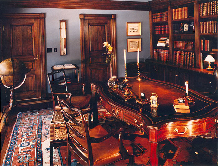 Kaplan residence, a complete ground-up 4600 sf remodel in Beverly Hills, was designed in a blend of traditional elegance & classic “Hollywood Glam”, reminiscent of Los Angeles’ finest homes in the 30’s and 40’s. The custom woodworking of doors, moldings, floors & casework was a cornucopia of exotic woods – black walnut, rosewood, zebrawood, ebony & birdseye maple. Each of the 3 fireplaces was faced with a different stone – English limestone, Italian calacatta marble & black granite. Nearly 100,000 bricks were used for the hardscape and summerhouse at the renovated poolside.