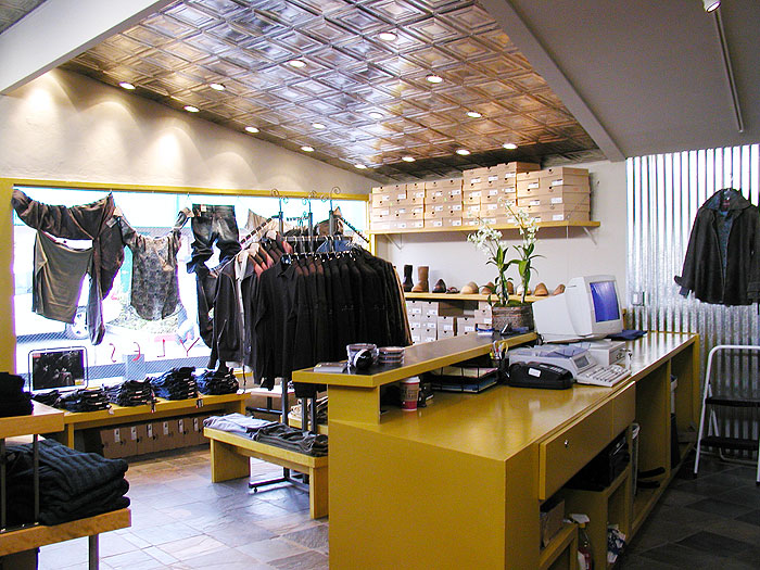 Men’s clothing boutiques in Malibu, CA, featured slate floors, corrugated & stamped metal finishes & custom millwork & racking.